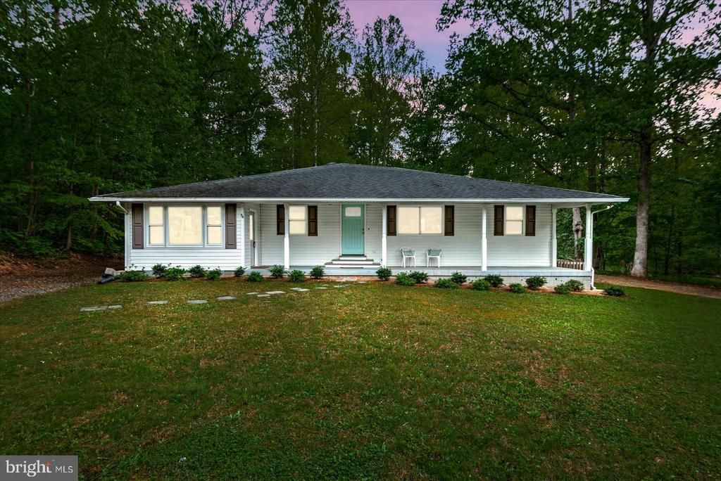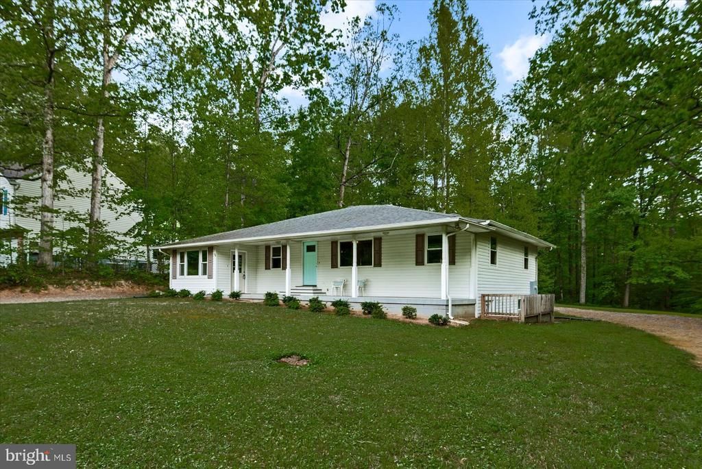 Charming move in ready rambler, 3-bedroom, 2-bath home in a private lake community offering access to a sandy beach and pavilion—perfect for enjoying relaxed, waterfront living. Nestled on a private 1-acre lot surrounded by mature oak trees, this beautifully renovated home blends modern upgrades with timeless charm. Inside, the main living area and kitchen feature a vaulted ceiling, creating a bright, open feel. The kitchen is fully updated with stylish finishes and sleek black stainless appliances. Major improvements include water treatment system, windows, doors, bathrooms, flooring, HVAC, roof, water heater, electrical wiring, and underground electrical service from the street to the home—no detail has been overlooked. Enjoy peaceful mornings on the spacious country front porch and unwind on the back deck overlooking the tranquil, tree-lined backyard. The loop driveway provides ample parking for guests and everyday convenience.