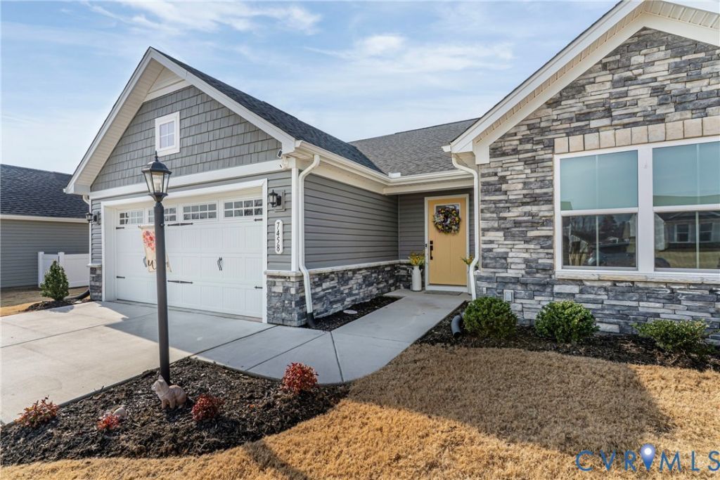 Welcome to The Groves at New Kent Estates, a vibrant 55+ community where 7458 Southamptonshire Way offers effortless one-floor living. Thoughtfully designed, this beautifully maintained home showcases an abundance of natural light throughout, included window shades, and an open layout that creates a warm and welcoming atmosphere from the moment you step inside. The stunning kitchen comes complete with a spacious island with breakfast bar and bright dining area. The primary suite includes a large walk-in closet and an ensuite with dual sinks + large walk-in shower. With lawn care included, you'll have more time to enjoy the neighborhood's clubs and social activities, or simply relax on your rear patio in the serenity of this thoughtfully planned community. The neighborhood features a clubhouse, zero-entry pool, a gym, trails, pickle ball courts, and so much more! Convenient proximity to Richmond International Airport and the historic charm of Colonial Williamsburg makes travel and leisure wonderfully accessible, allowing you to embrace a lifestyle that is both easy and enriching.